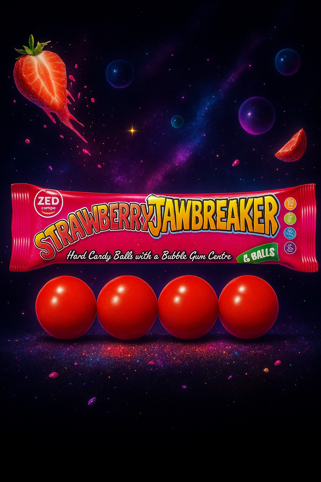 Der Jawbreaker Strawberry überzeugt mit einem intensiven Erdbeergeschmack, der sich Schicht für Schicht aus dem harten Zuckermantel herauslutscht.