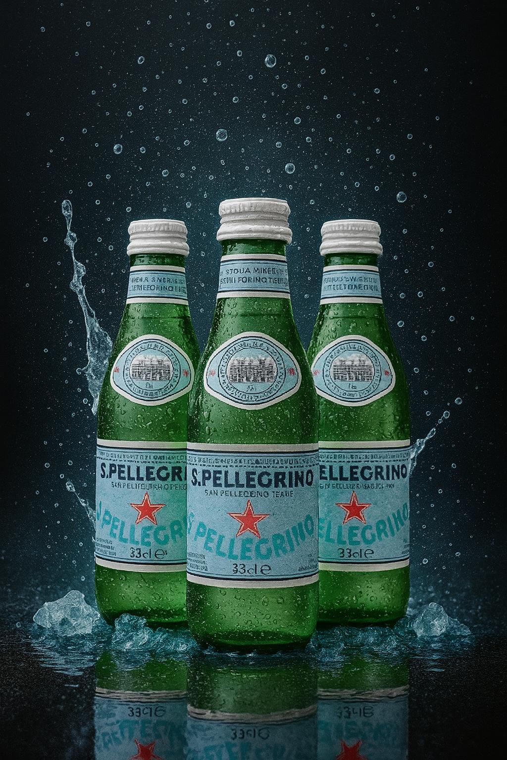 San Pellegrino Acqua Frizzante ist ein natürliches Mineralwasser mit feiner Kohlensäure, das direkt aus der Quelle in San Pellegrino Terme in den italienischen Alpen stammt. Es ist weltweit bekannt für seinen mineralischen, klaren Geschmack mit angenehmer Perlage.